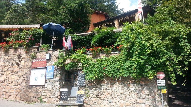 Von der Pergola hingen neben den Trauben auch Maiskolben und bunte Fähnchen herab. Die mit rot-weiss-karierten Tafeldecken bedeckten Steintische, die frischen Blumen und dazu noch die wunderbare Tessiner Musik – das ist pure Gemütlichkeit.