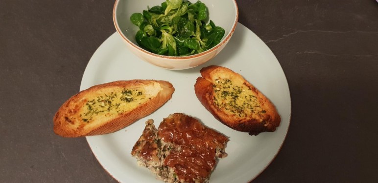 Dazu gratinierte Baguettescheiben: