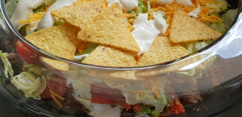Gestern hatte die Klasse meiner jüngsten Tochter zum Ende des Schuljahres ihr alljährliches Sommerfest. Zu diesem Anlass bringt jeder etwas für ein bunt gewürfeltes Buffet, das auf der Mitte des kleinen Schulhofs aufgebaut wird, mit. Um das Buffet herum werden Biertische und Bänke aufgebaut. Ein jeder sucht sich einen Platz und dann wird gemütlich gegessen, erzählt, gelacht und wieder gegessen… bis nur noch leere Platten, Körbe, Teller und Schüsseln da sind. Als ich da so gestern an dem Buffet stand, fiel mein Blick auf diesen wundervoll angerichteten mexikanischen Schichtsalat. So einen Salat hatte ich zuvor noch nie gesehen geschweige denn gegessen. Da er einfach so toll aussah, so frisch und lecker schmeckte, musste ich ihn heute unbedingt nachmachen…