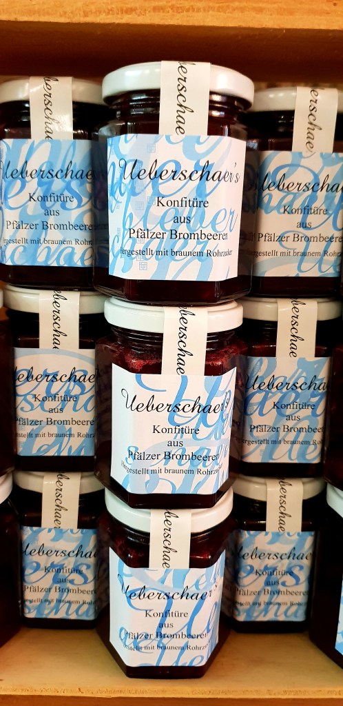 Tobias betreibt eine Delikatessenmanufaktur, die man einfach erlebt haben muss. Neben Pfälzer Spezialitäten findet man hier die sensationellen Ueberschaer Marmeladen. Für die handgefertigten Köstlichkeiten verarbeitet er zumeist Obst aus den eigenen Gärten. Brauner Zucker, reines Apfelpektin und spezielle Rezepte ergeben Marmeladen, die sich grösster Beliebtheit erfreuen. Köstlich finde ich auch sein Tomatensugo „Chön Charf“, was raffiniert zu Pasta, Chili con Carne und auch zur Currywurst schmeckt. Ein grosser Fan bin ich zudem von Tobias Spituosen Kreationen wie dem Pfälzer Weinbrand mit Arabica Kaffee und dem Magenlikör mit dem amüsanten Titel „Ziemlich übles Zeug“,der gar nicht so übel schmeckt.