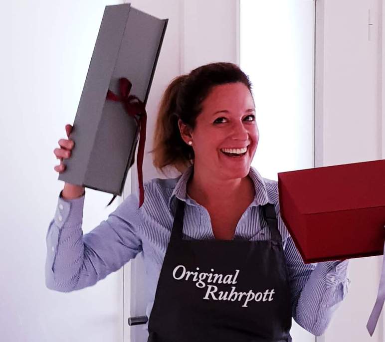 Es gibt unsere ORIGINAL Bücher und Kochschürzen, Pralinen aus der Chocolaterie & Patisserie Monika Wechsler und erstmalig Woodland Gin aus dem Sauerland.