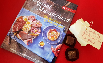 • Präsent „Original Münsterland“ Kochbuch mit der „Münsterländer Kaffeefahrt“-Praline aus der Chocolaterie & Patisserie Monika Wechsler aus Dortmund-Hörde (100 g) € 24,00