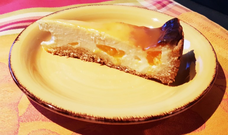 Mandarinen-Schmand-Kuchen mit einem Mantel aus Passionsfruchtcurd