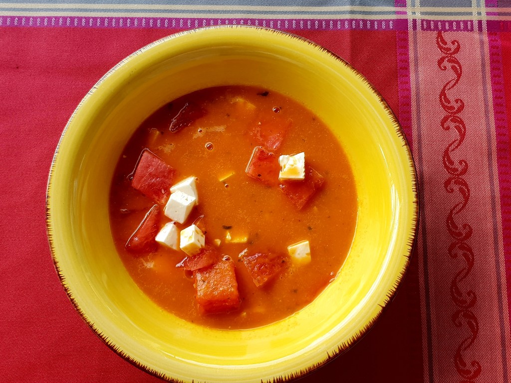 Inspiriert durch eine wunderbar erfrischende und köstliche Melonen-Tomatensuppe, die ich vor wenigen Wochen auf dem Marktplatz von Arles kennen lernen durfte, habe ich gestern meine eigene Version ausprobiert und meine Sommersuppe dieses Jahres gefunden.