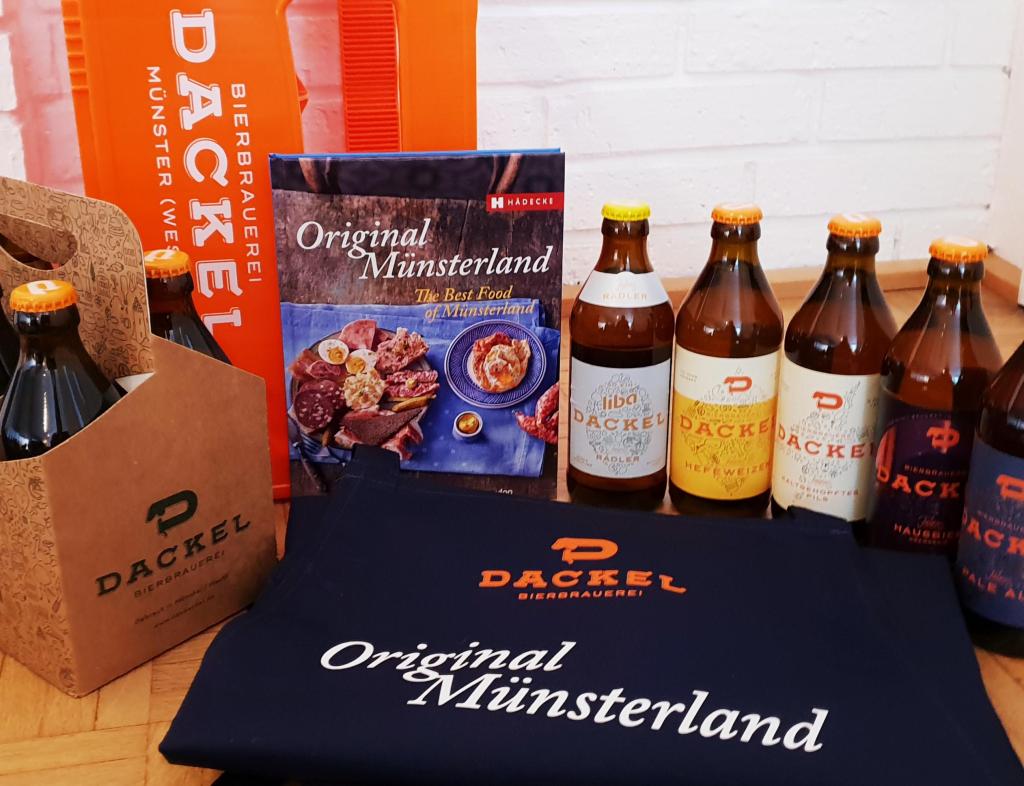 - Präsent „Original Münsterland“ Kochbuch mit einem 6 Pack an Bierspezialitäten aus der in Münster ansässigen Dackel Brauerei € 22,00