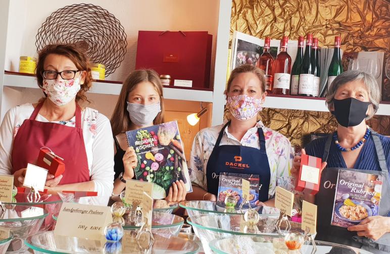 Mit dabei ist natürlich auch unser Ruhrpott-Kochbuch! Zu dem Buch oder einzeln gibt es Grubentücher, Schürzen und auch handgefertigte Pralinen, Bier, Korn und Liköre alt eingesessener Dortmunder Familienbetriebe.