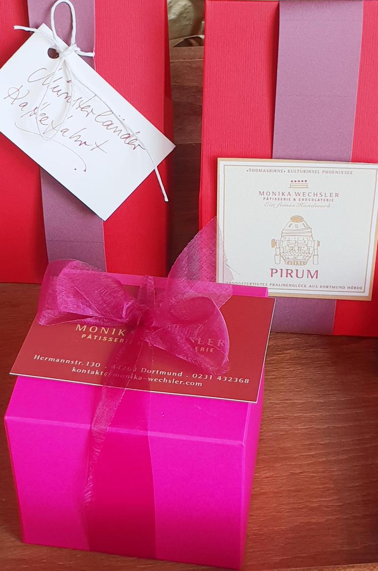 - Präsent Regional Kochen – Das Kochbuch von Dortmund -Text & Fotos von Josepha Vosschulte 62 Seiten mit einer Pralinenmischung von Monika Wechsler verpackt in einer pinken Faltschachtel € 28,00